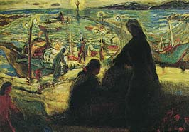 李娟娟 淡水漁家/1992/油畫/80x116.5cm 李娟娟以細膩的描繪道出了漁家的生活。 李娟娟簡歷(1942-) 1942 生於南投縣 1965 國立藝專美術科第一屆畢業 1991 台北市立美術館個展,作品典藏 1991 個展於東之畫廊