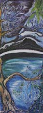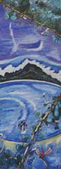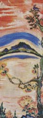 畫完我家窗口的風景,我就著手去畫觀音山的四季。 春天的觀音山,桃花開了,鴿子雙雙對對,咕咕的叫著。 夏天的時候,觀音山白雲堆的像棉花,紅蜻蜓在瓜棚下飛來飛去。 秋天的季節,柿子紅了,菊花開了,觀音山頂的天空和港口水面 冬天的觀音山,風吹的呼呼響,雨也下個不停,竹子在寒風裡顫 抖搖晃。